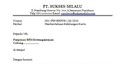 Contoh Surat Pernyataan Kehilangan Kartu Bpjs Ketenagakerjaan Kumpulan Contoh Surat Dan Soal Terlengkap
