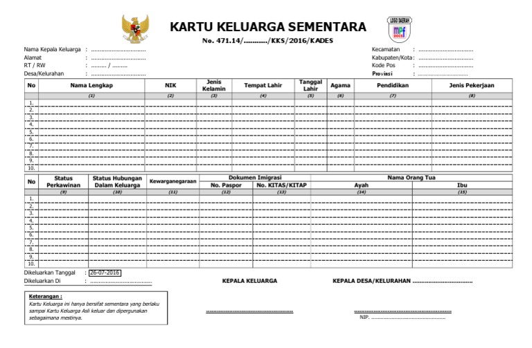 Download Blangko Kartu Keluarga Daytisenca S Ownd