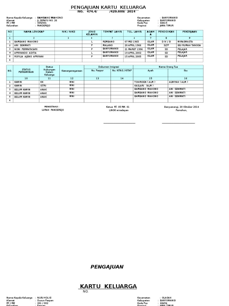 Format Kartu Keluarga Docx Document