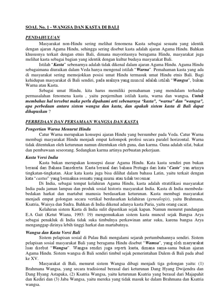 Kasta Dulu Dan Kini Di Bali Bhyllabus L Enigme