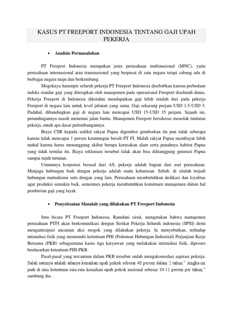 Strategi Freeport Selesaikan Kisruh Kenaikan Gaji Bisnis Tempo Co