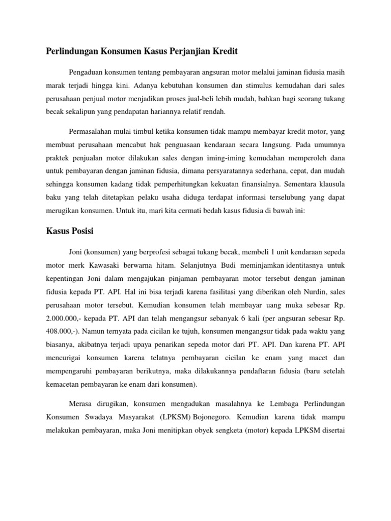 Unduh Undang Hukum Perdata Dan Undang Undang Perlindungan Konsumen Studi Kasus Putusan Nomor 56 Pdt G 2011 Pn Tegal Pdf Dokdrive