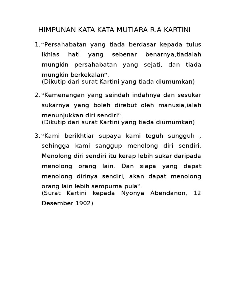 Kata Kata Mutiara R A Kartini Youtube