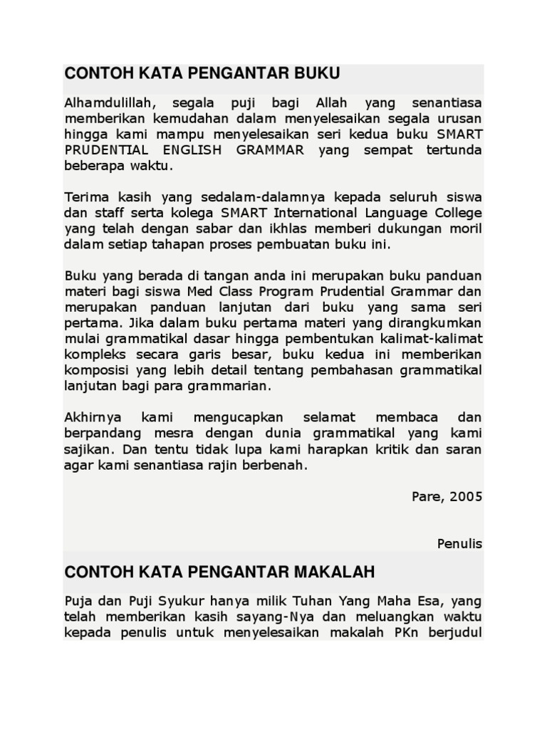 Contoh Kata Pengantar Buku Yang Baik Berbagai Buku