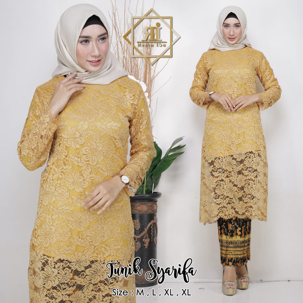 Setelan Kebaya Brokat Tunik By Restu Ibu Gold Termurah Shopee Indonesia