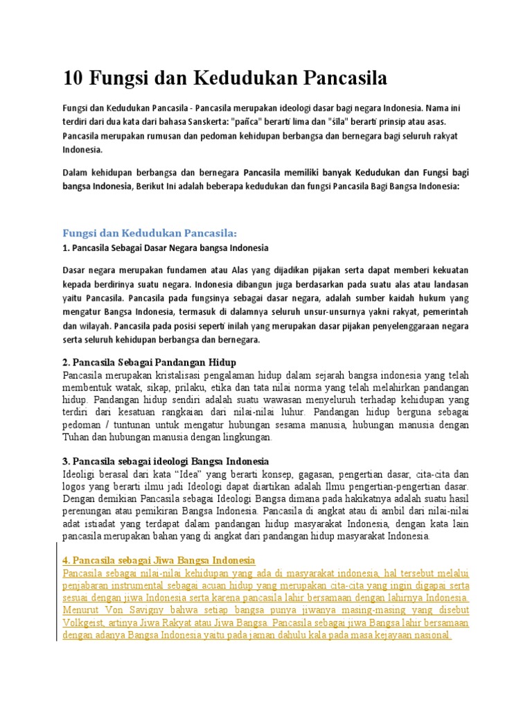 Fungsi Dan Kedudukan Pancasila Docx Document