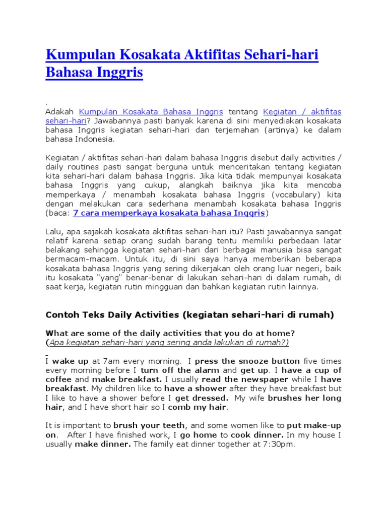 Contoh Aktifitas Sehari Hari Dalam Bahasa Inggris Dan Artinya Pendidikan Bahasa Inggris