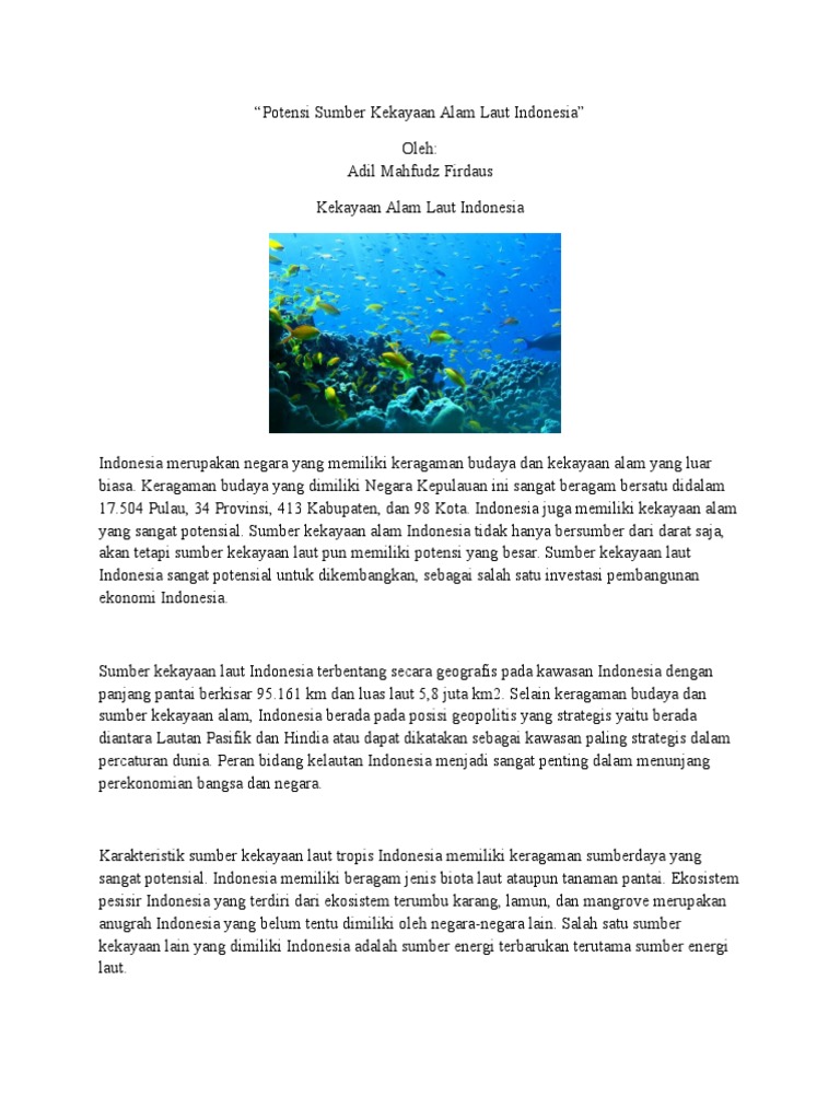 Potensi Pemanfaatan Dan Kekayaan Sumber Daya Laut Indonesia By Niti Cahyaning Utami