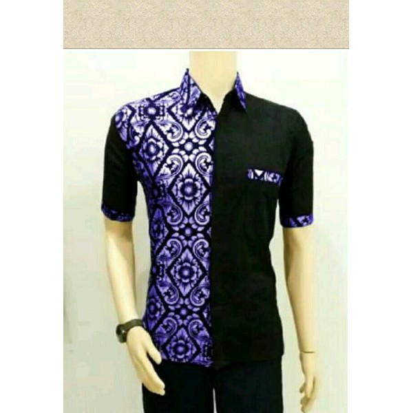 Jual Kemeja Batik Kombinasi Polos Kemeja Batik Slim Fit Pria Kemeja Batik Lengan Pendek Batik Pekalongan Di Lapak Putra Brawijaya Batik Bukalapak