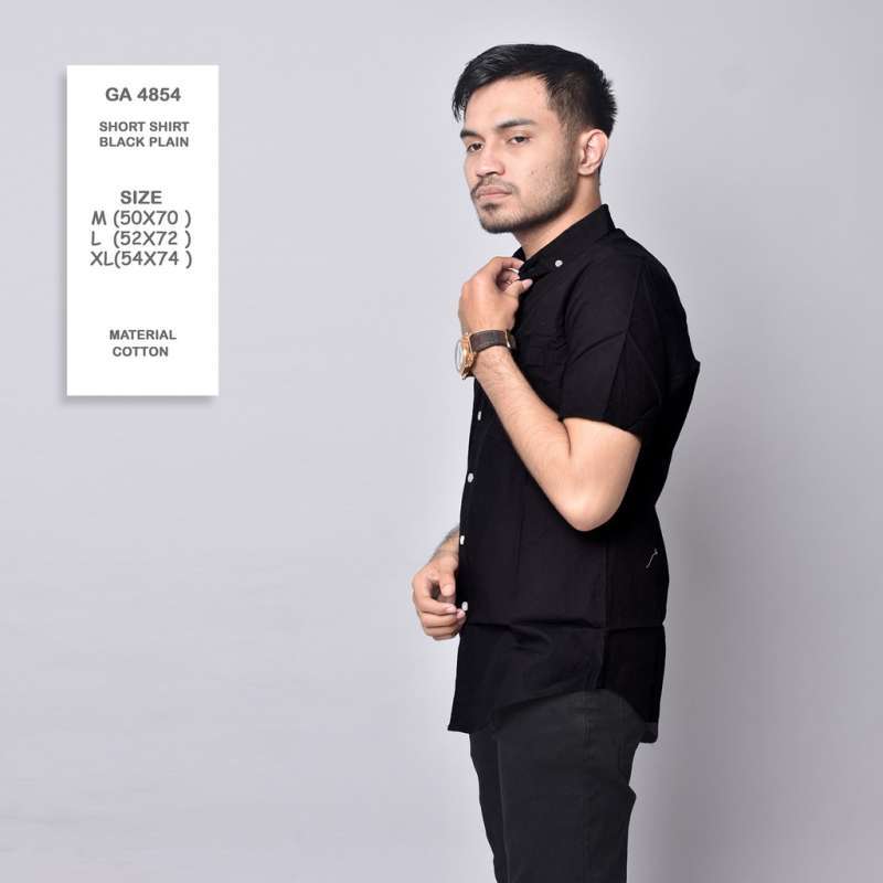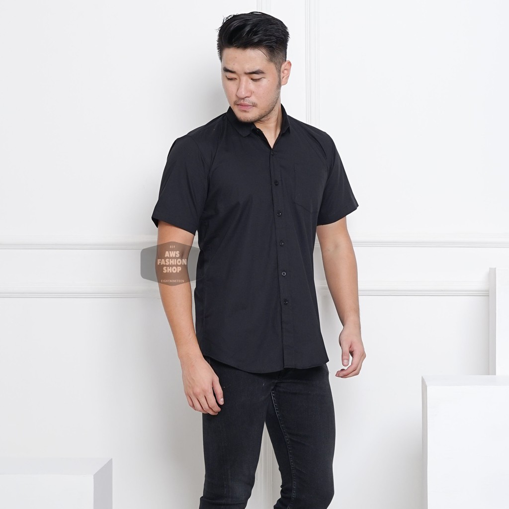 Jual Terbaru Kemeja Hitam Polos Pria Lengan Pendek Baju Cowok Slimfit Jakarta Utara Berbintang Mart Tokopedia