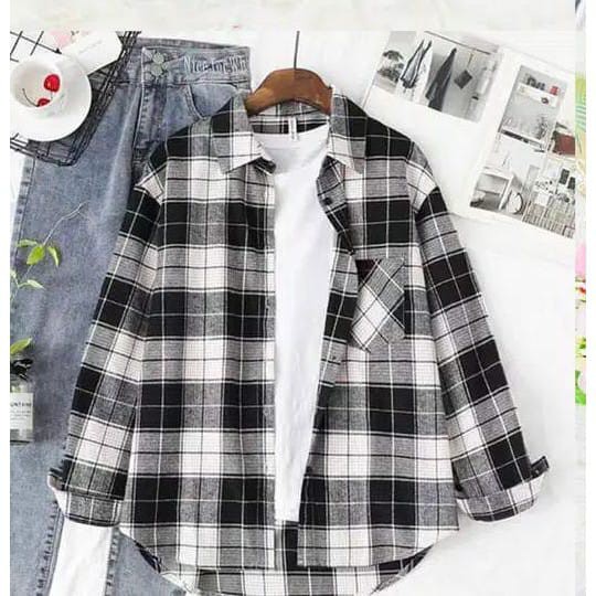 Jual Kemeja Flanel Tangan Panjang Kotak Kotak Hitam Putih Kasual Wanita Original Vra 05 Di Lapak Olshoaf Bukalapak