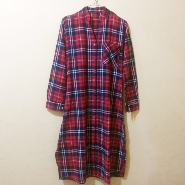 Kemeja Kotak Kotak Panjang Fesyen Wanita Pakaian Wanita Di Carousell