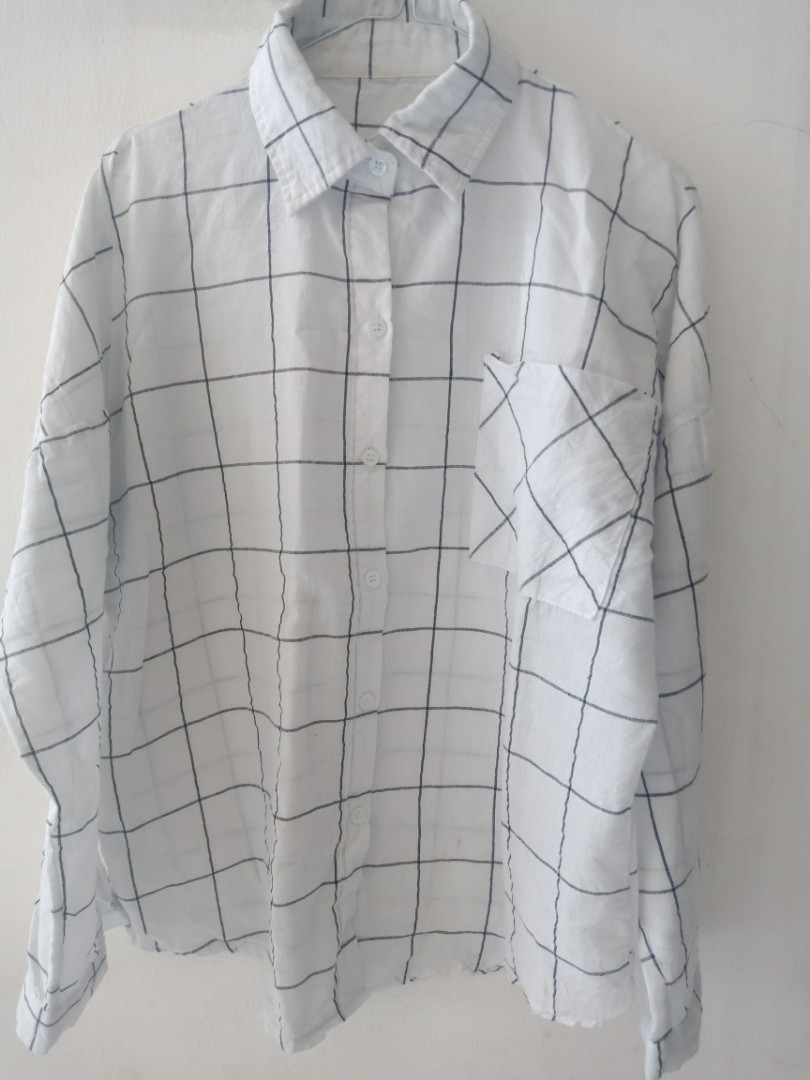 Kemeja Kotak Kotak Putih Fesyen Wanita Pakaian Wanita Atasan Di Carousell