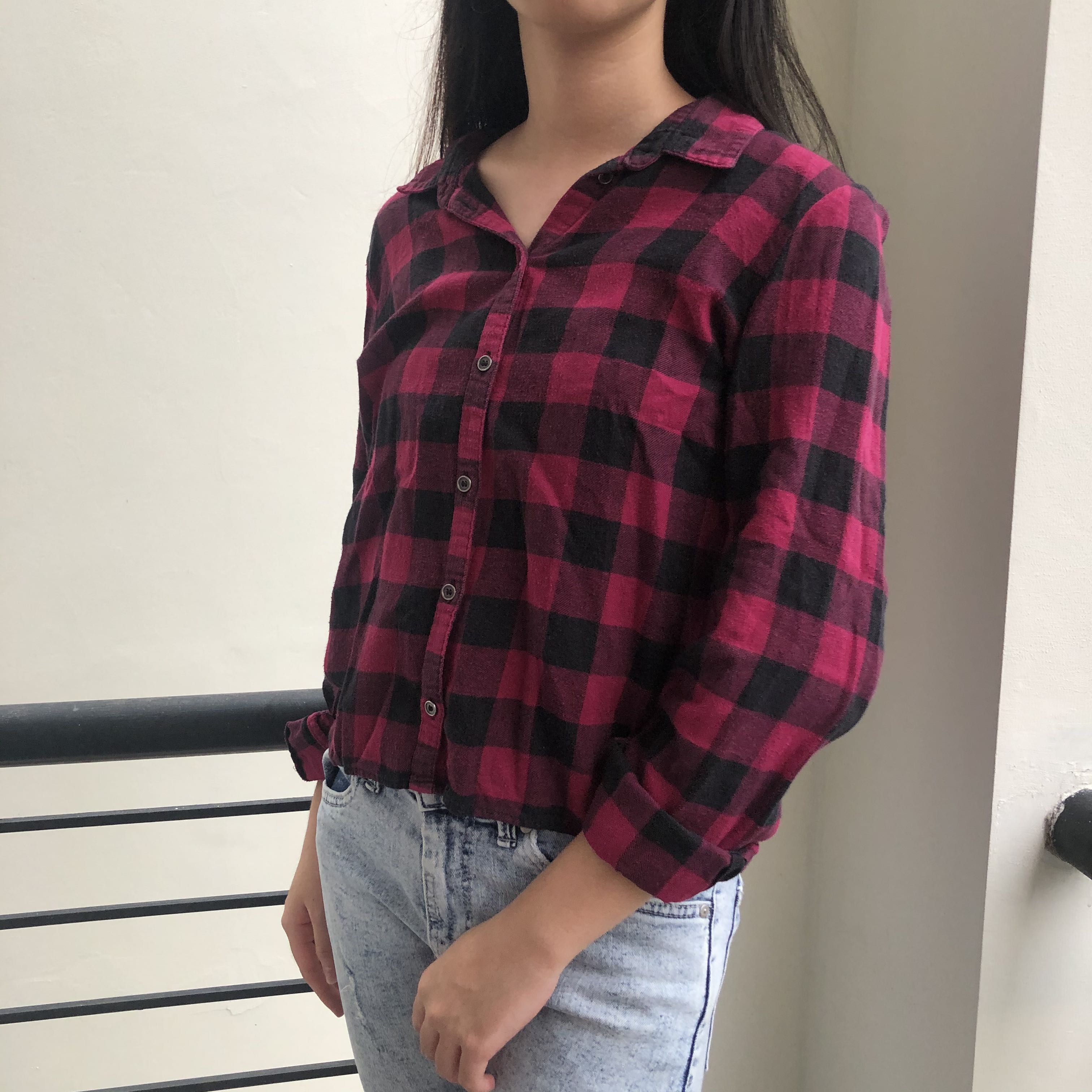 H M Kemeja Kotak Kotak Women S Fashion Clothes Tops On Carousell