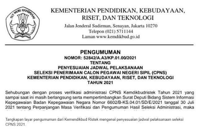 Pengumuman Cpns Kemendikbud 2021 Perubahan Jadwal Skd Terbaru Kumparan Com