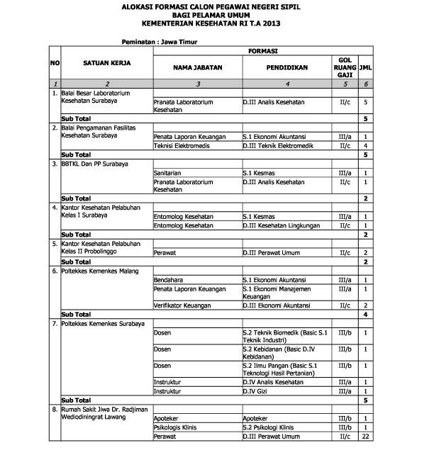 Daftar Formasi Cpns Kemenkes 2018 2019 Cpns 2021 Daya Tampung Snmptn Sbmptn Umptkin