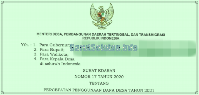 Surat Edaran Kementerian Desa Nomor 17 2020 Tentang Percepatan Penggunaan Dd Tahun 2021