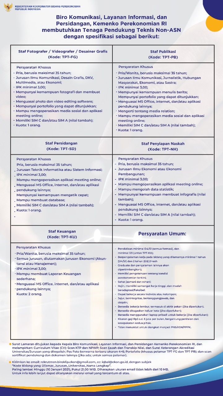 Lowongan Kerja Kementerian Koordinator Bidang Perekonomian 2019 Tertarik Klik Di Sini Ika Um