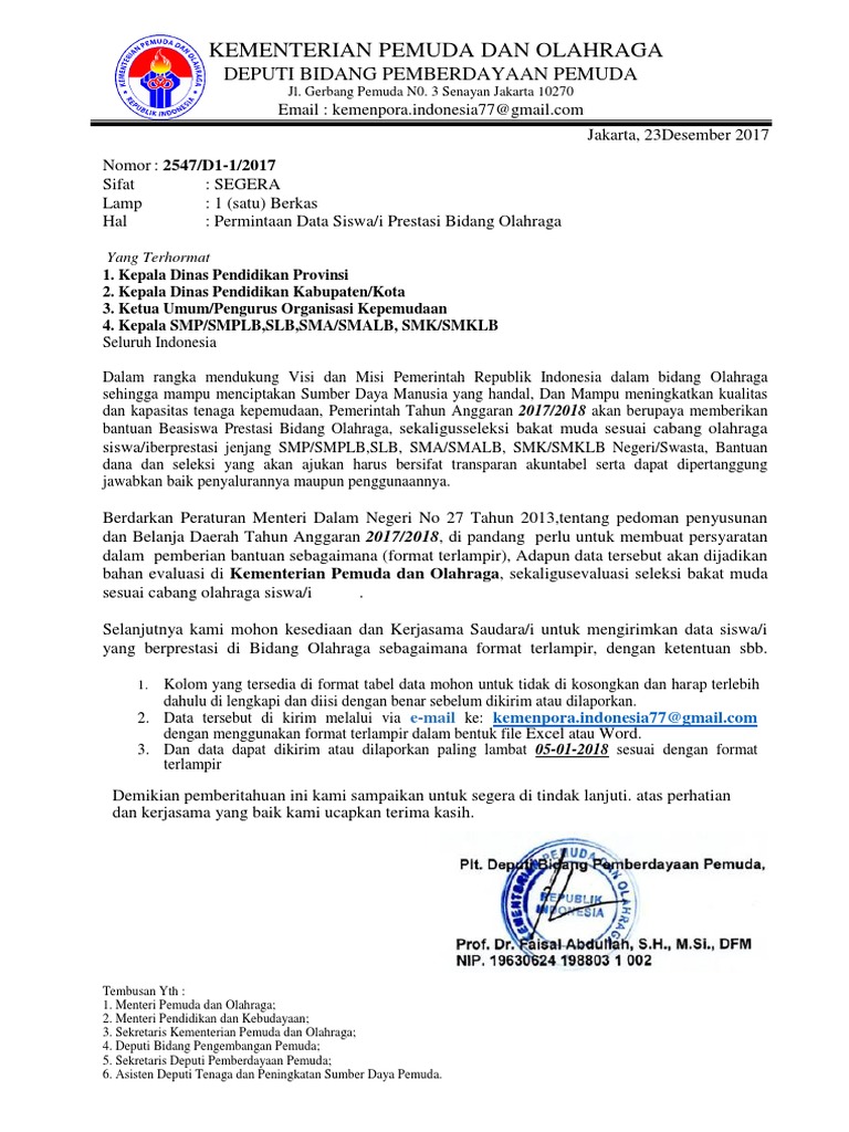 Fillable Online Kemenpora Go Sekretaris Kementerian Pemuda Dan Olahraga Fax Email Print Pdffiller