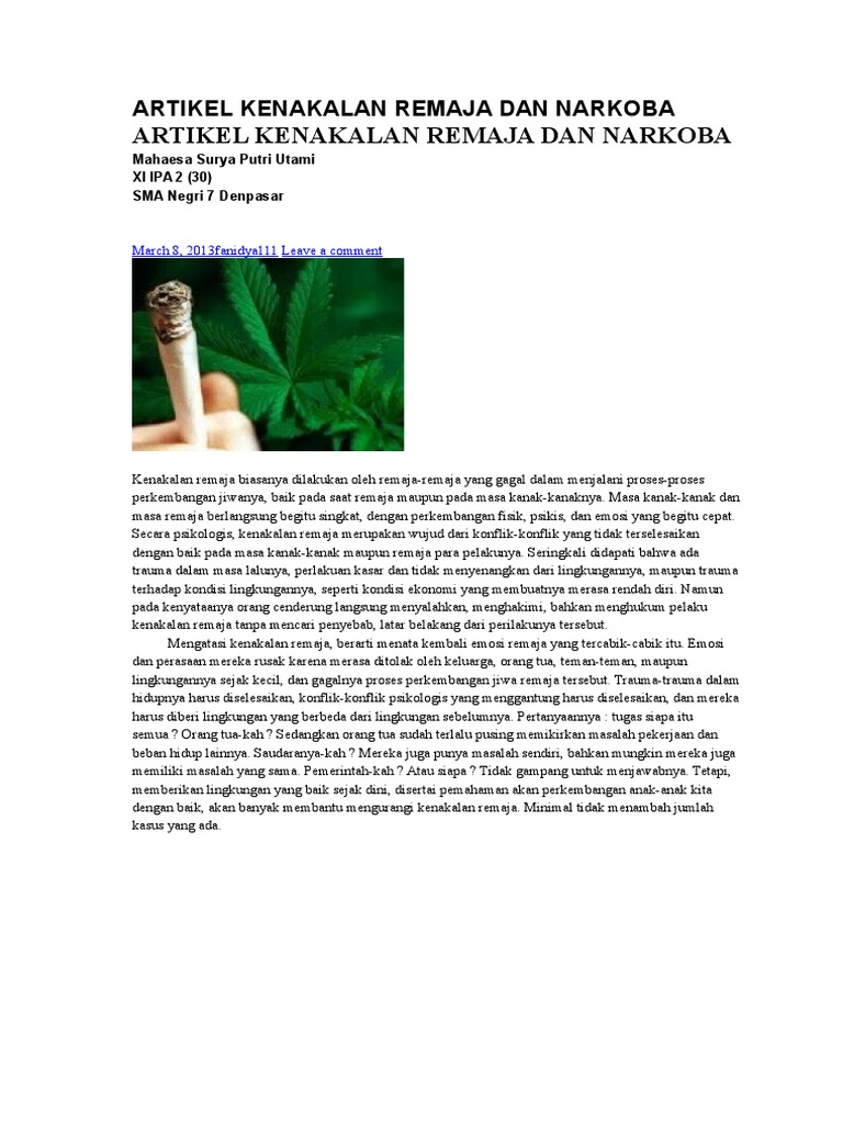 Akibat Kenakalan Remaja Dan Narkoba