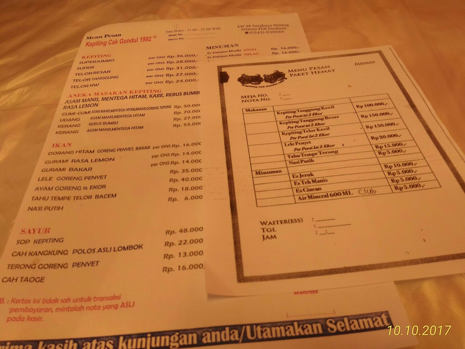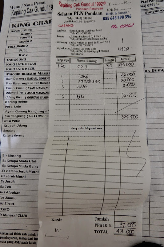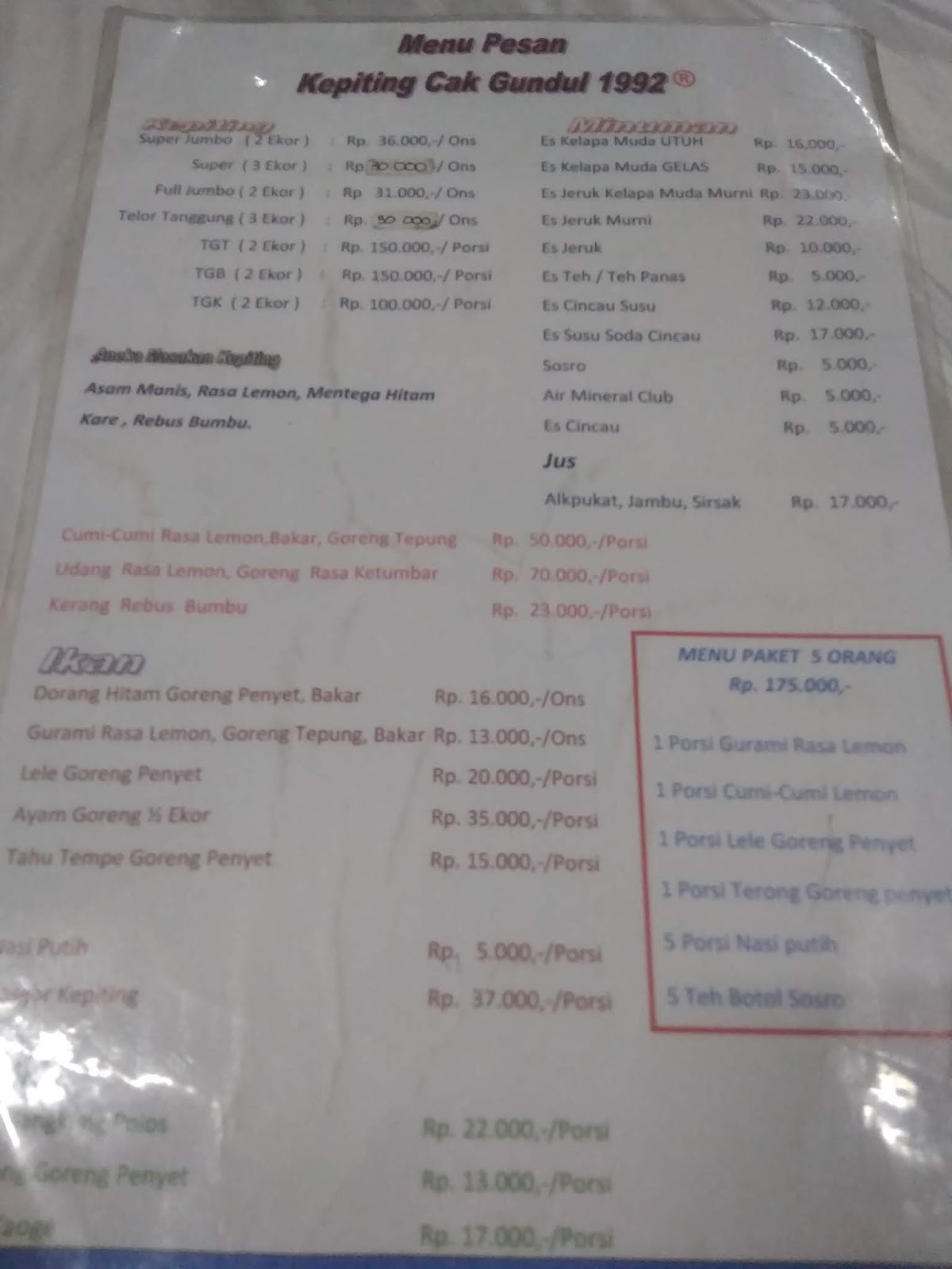 Harga Menu Warung Kepiting Cak Gundul Surabaya Terbaru 2017
