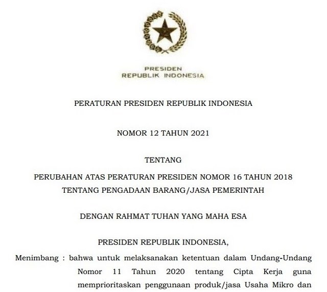 Unduh Perpres Nomor 12 Tahun 2021 Tentang Pengadaan Barang Jasa Pemerintah Pengadaan Eprocurement