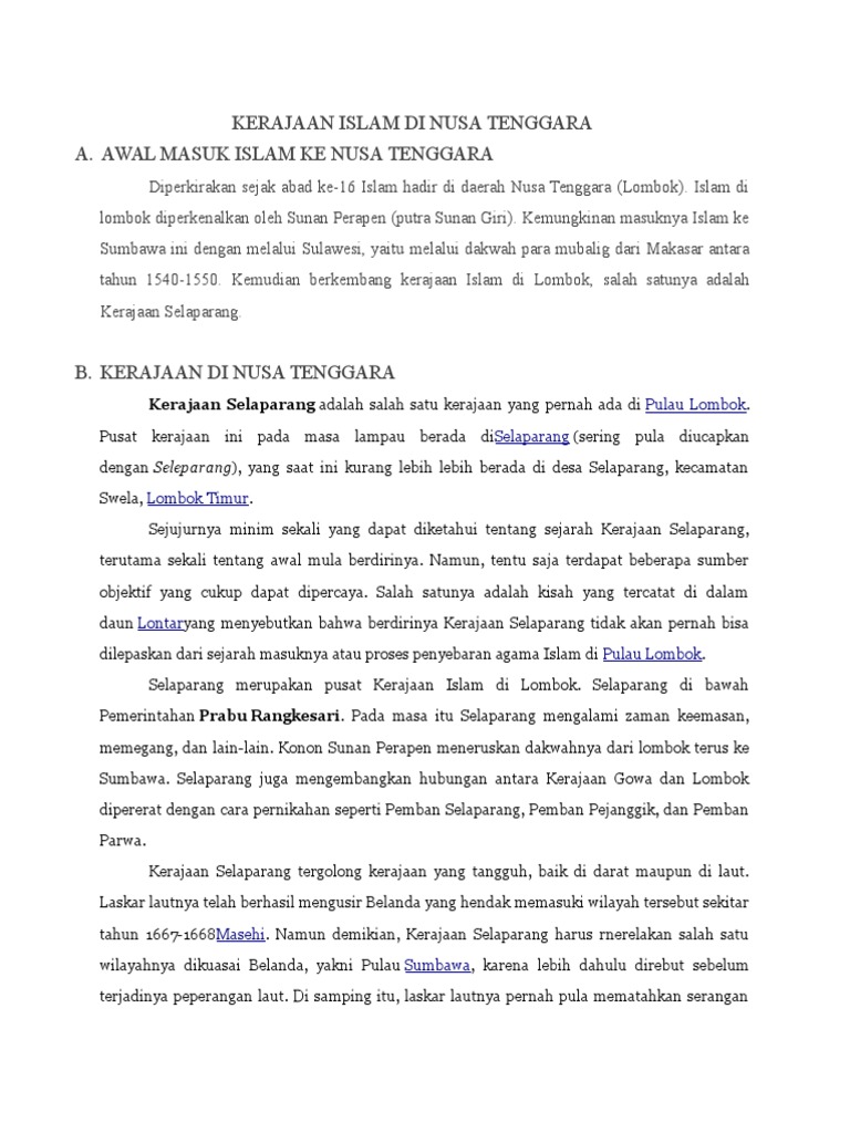 Kerajaan Kerajaan Islam Di Nusa Tenggara Pdf Document