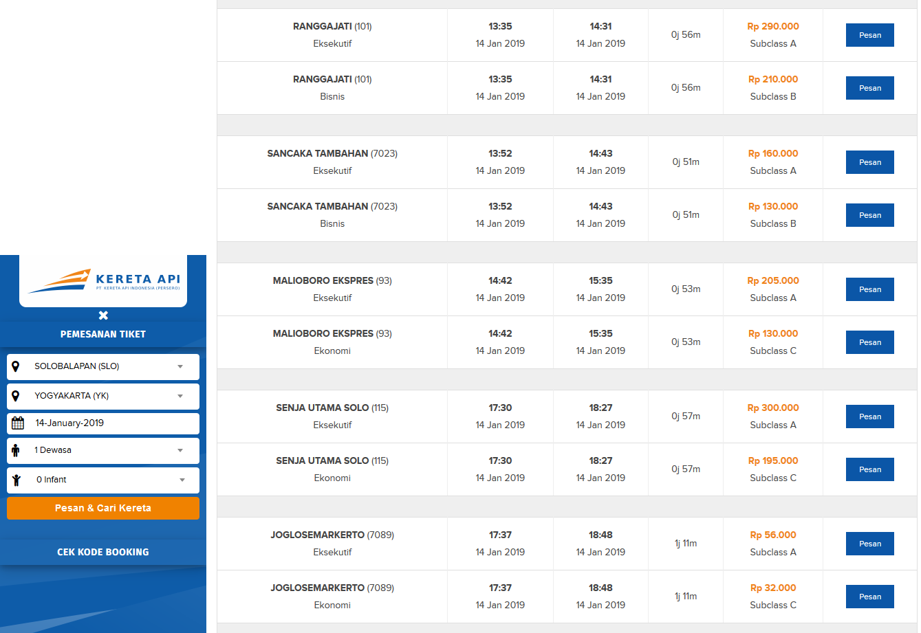 Harga Tiket Kereta Api Surabaya Jogja Terbaru Aneka Harga