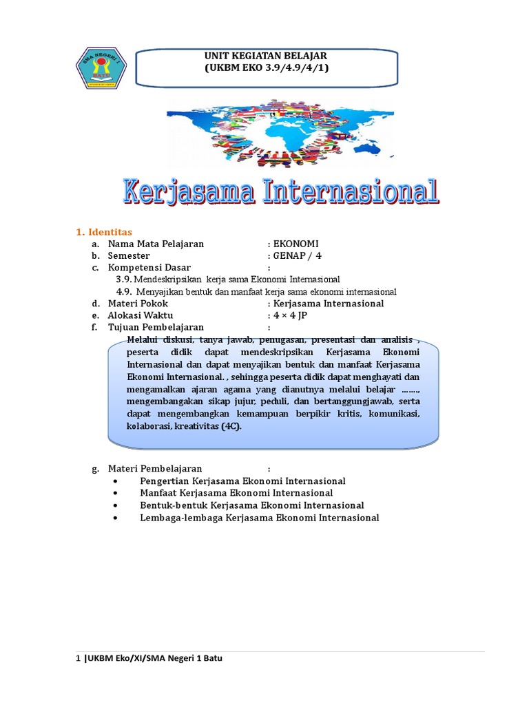 Ejercicio De Lkpd Ekonomi Materi Kerjasama Ekonomi Internasional