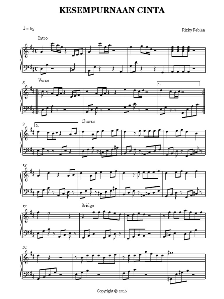 Sheet Music Rizky Febian Kesempurnaan Cinta Arr Rai Bagus Tokofile
