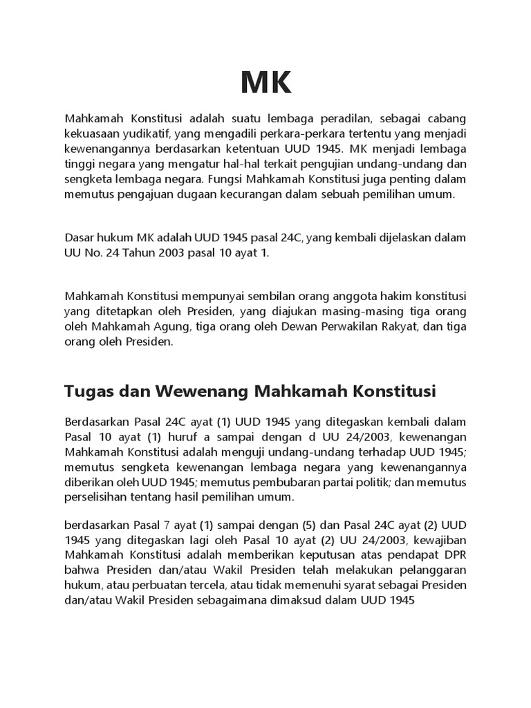 Wewenang Mahkamah Konstitusi Pengertian Sejarah Tugas