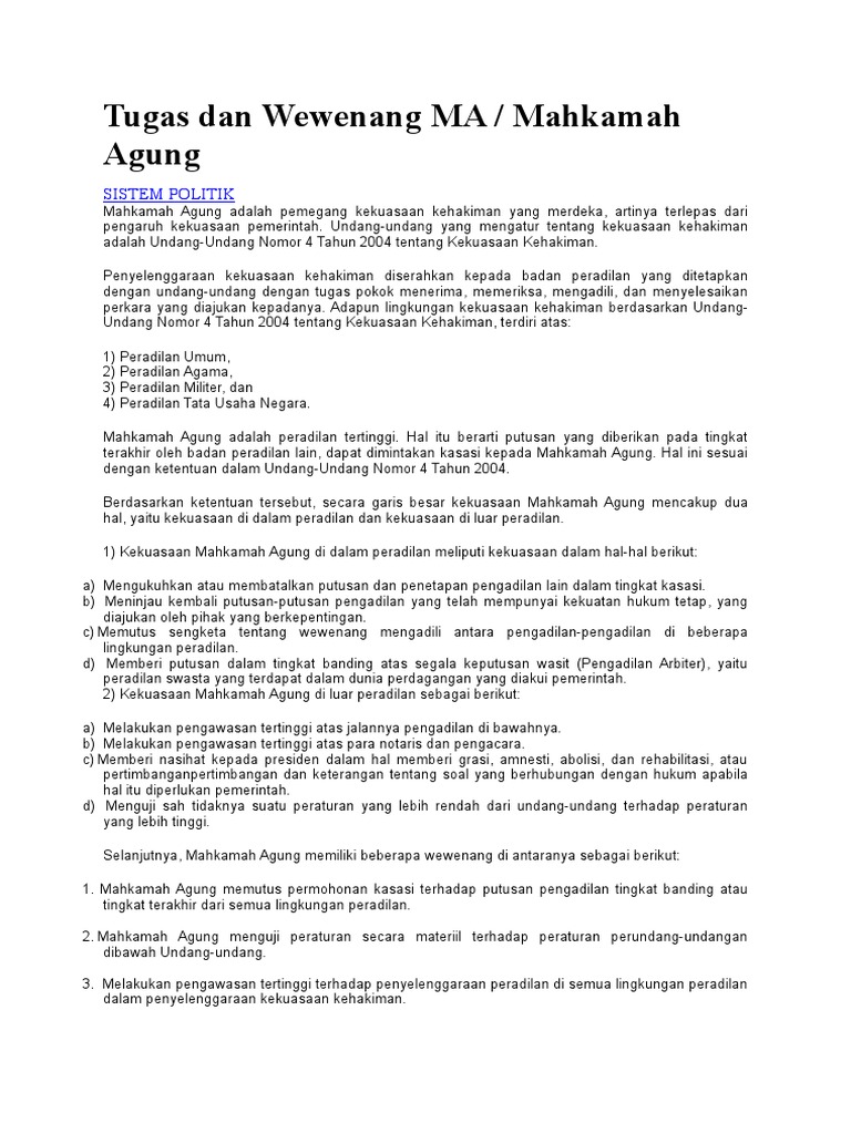 Tugas Ma Mahkamah Agung Hak Dan Wewenang Menurut Uud