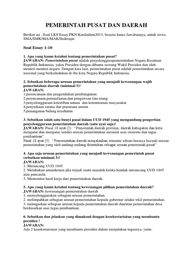 Ppkn Jelaskan Kewenangan Pemerintah Pusat Dan Kewenangan Pemerintah Daerah Brainly Co Id