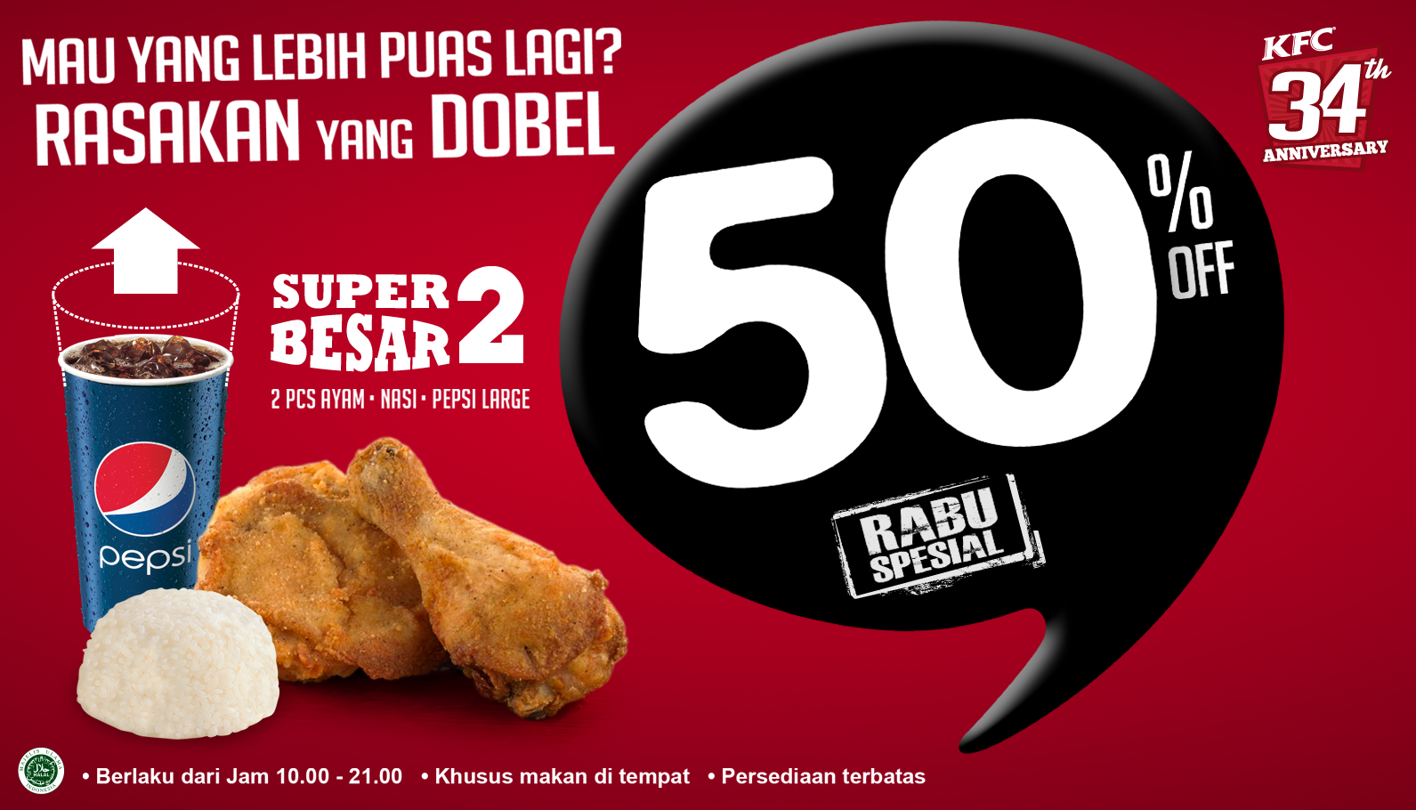 Kfc Jagonya Ayam ××××××ר Kfcrabuspesial Mau Yang Lebih Puas Dan Dobel Nikmati Promo Rabu Spesial Diskon 50 Untuk Menu Super Besar 2 Http T Co Tm58ls9y2m