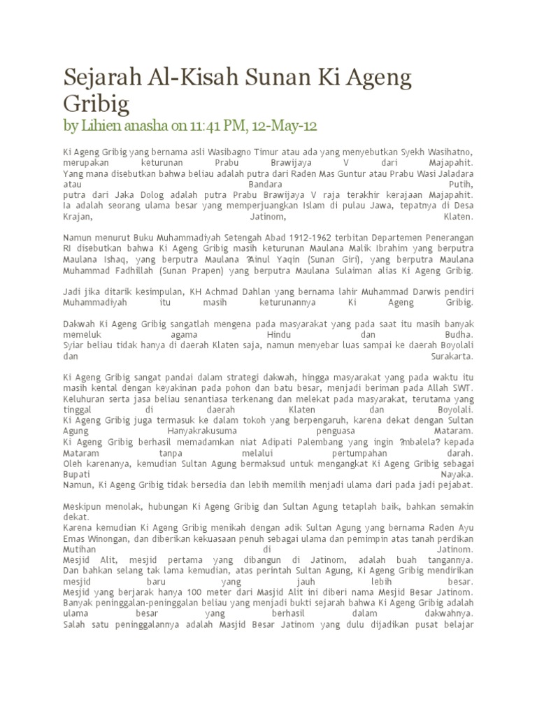Sejarah Ki Ageng Karanglo Alang Alang Kumitir Wordpress