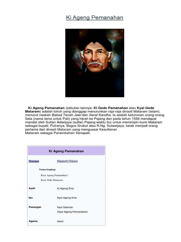 Ki Ageng Pamanahan Buku Ensiklopedi Dunia P2k Um Surabaya