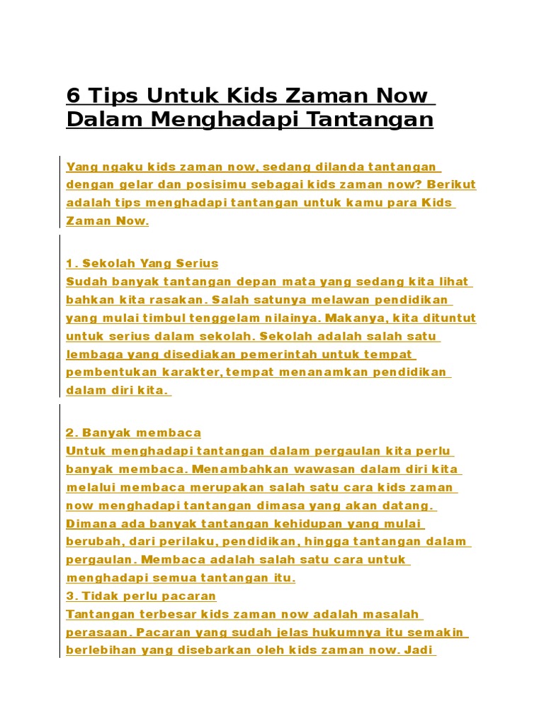 6 Tips Untuk Kids Zaman Now Dalam Menghadapi Tantangan Pdf