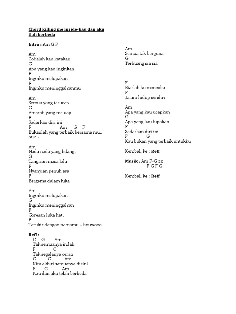 Chord Killing Me Inside Kau Dan Aku Berbeda