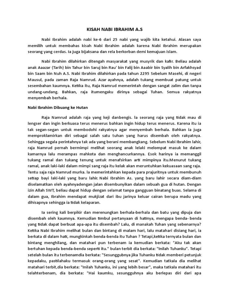 Jelaskan Kisah Yang Dapat Diambil Dari Kisah Nabi Ibrahim As Brainly Co Id