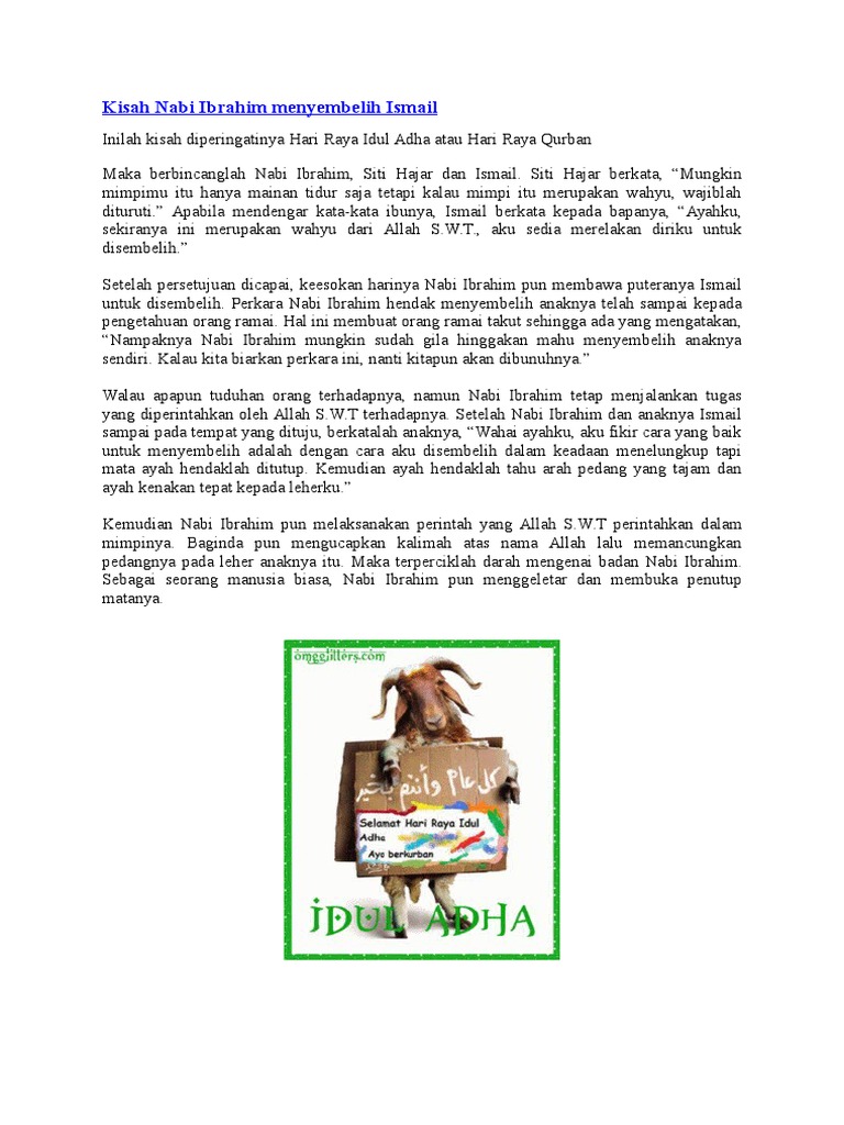 Kisah Pengorbanan Nabi Ibrahim A S Menyembelih Anaknya Nabi Ismail A S Blog Redzuan Ridz