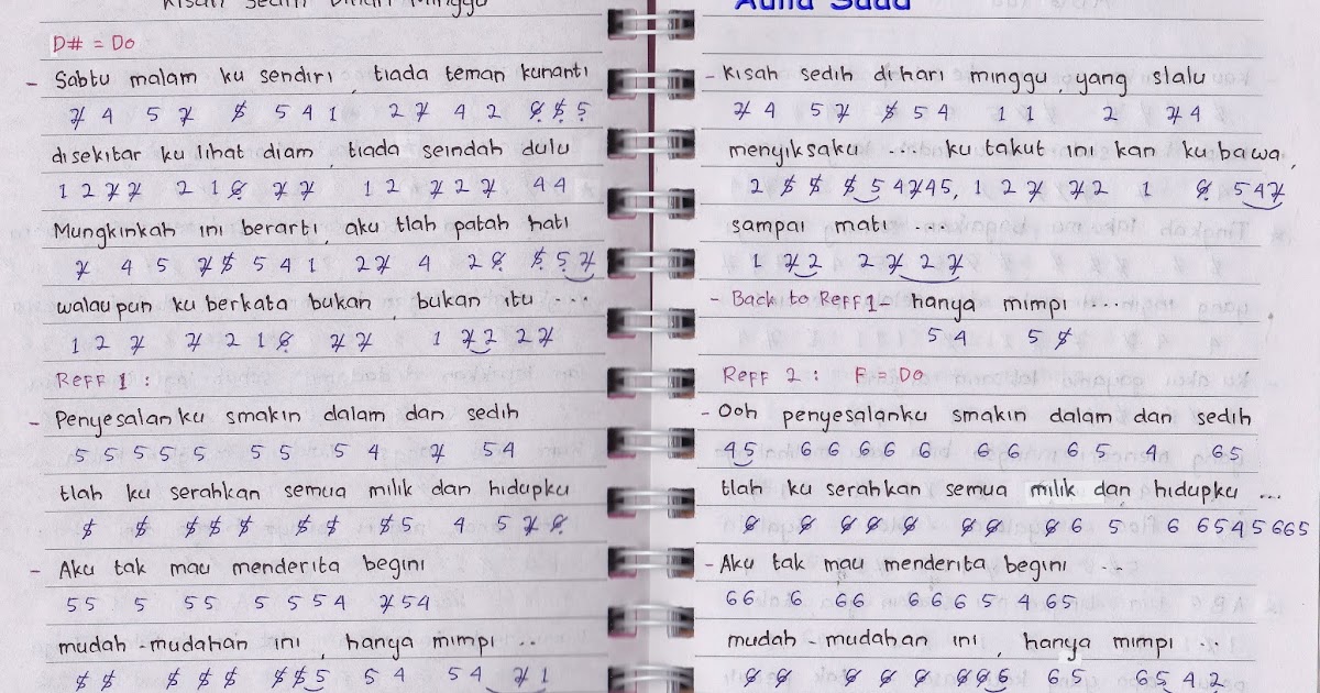 Kisah Sedih Di Hari Minggu Koes Plus Notasi Partitur Lagu