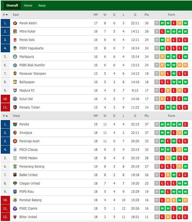 Klasemen Liga 2 Indonesia Liga Indonesia