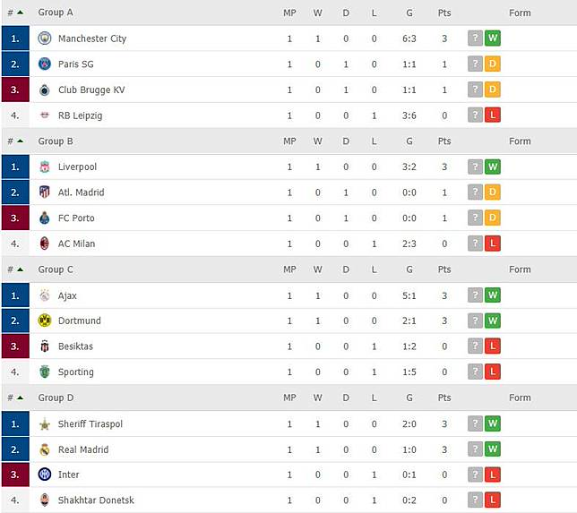 Hasil Dan Klasemen Liga Champions Uefa Matchday Kedua Grup A B C D Jadwal Hasil Dan Klasemen Liga Champions Eropa