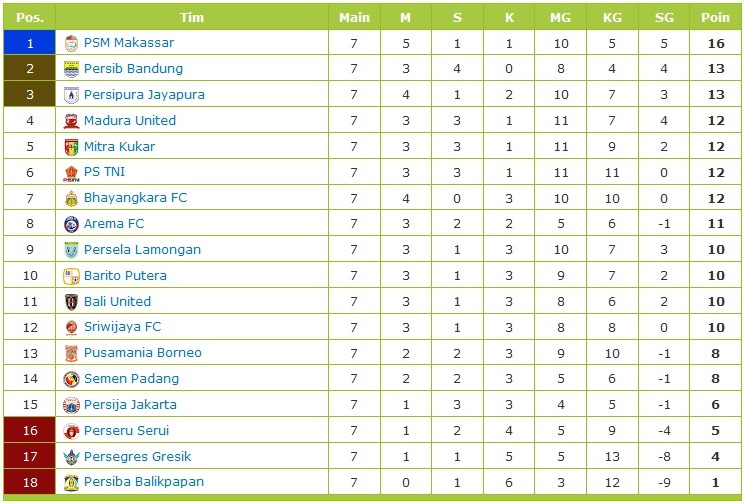 Klasemen Dan Hasil Liga 1 Pekan Ke 7 Up Date 22 Mei 2017 Psm Di Puncak Klasemen Babatpost Com