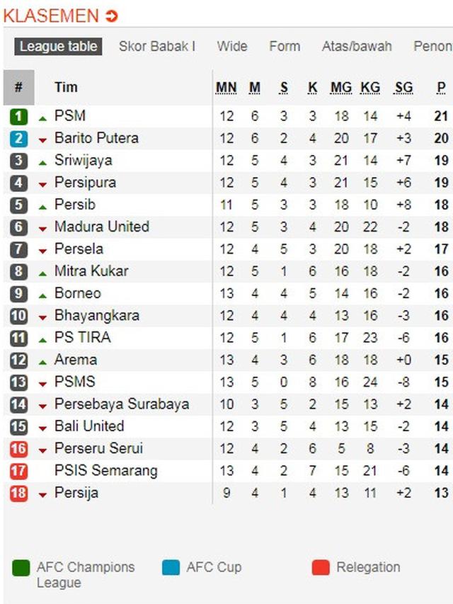 Klasemen Liga 1 Arema Naik Persija Jadi Juru Kunci Bola Liputan6 Com