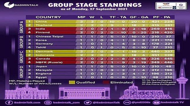 Klasemen Sementara Piala Sudirman 2021 8 Peserta Dipastikan Lolos Ke Perempat Final Termasuk Indonesia Ponorogo Terkini