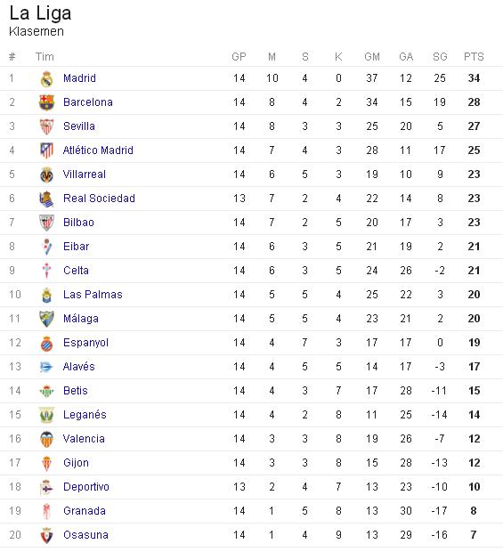 Klasemen Liga Spanyol Radar Bogor Berita Bogor Terpercaya