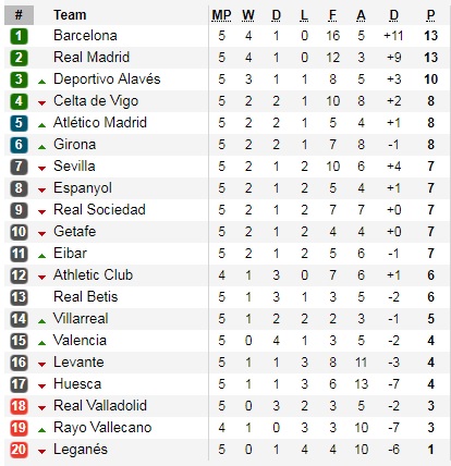 Klasemen Sementara Liga Spanyol 2020 2021 Pekan Ke 5 Peta Sulut