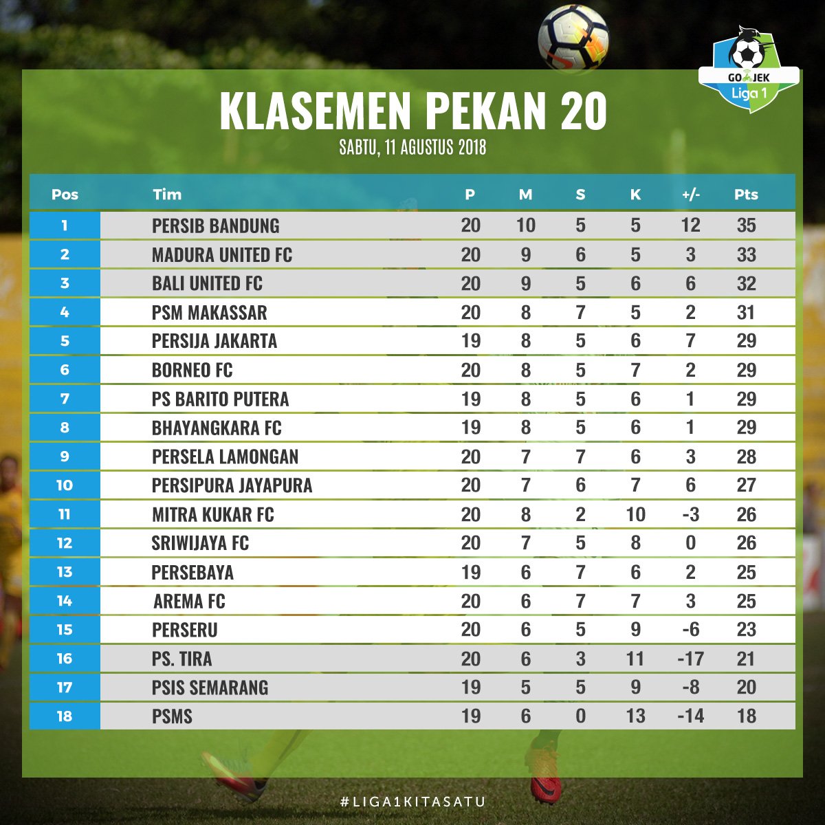 Bri Liga 1 En Twitter Klasemen Sementara Go Jek Liga 1 Pekan 20 Hingga Sabtu 11 8 Klasemen Selengkapnya Https T Co M3dni01jqj Gojekliga1 Liga1kitasatu Https T Co Bh14bbjj2y