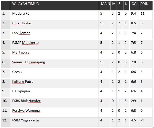Liga 2 2019 Ini Update Klasemen Wilayah Timur Terbaru Harianjogja Com